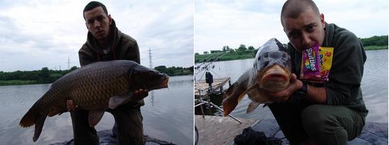 Meet Carp, unde am mai pus în masină câteva kilograme de boiliesuri, o conservă de cânepă, 2 kg de pelete Trigga, lansete, mulinete si tot ce a mai fost necersar pentru o partidă de 24 de ore pe Pontonul 2. La baltă am decis să pescuim cu câte 3 lansete fiecare si ne-am împărtit momelile neconventionale. Cipică a ales să pescuiască cu Haribo, Skittles si Menthos, iar mie mi-au revenit calamarii, scoicile si crevetii. Evident, pe firele de păr ale monturilor. Cipică si făcut o nadă dintr-un amestec de boiliesuri CPK, pelete, bomboane, jeleuri si mentosane. Eu mi-am făcut un mix mult mai greu, din cânepă, porumb, boiliesuri CPK, calamar, ton, hering, scoici, creveti si carne la cutie. Nada părea foarte apetisantă, urma examentul suprem – părerea crapilor din Tâncăbesti.