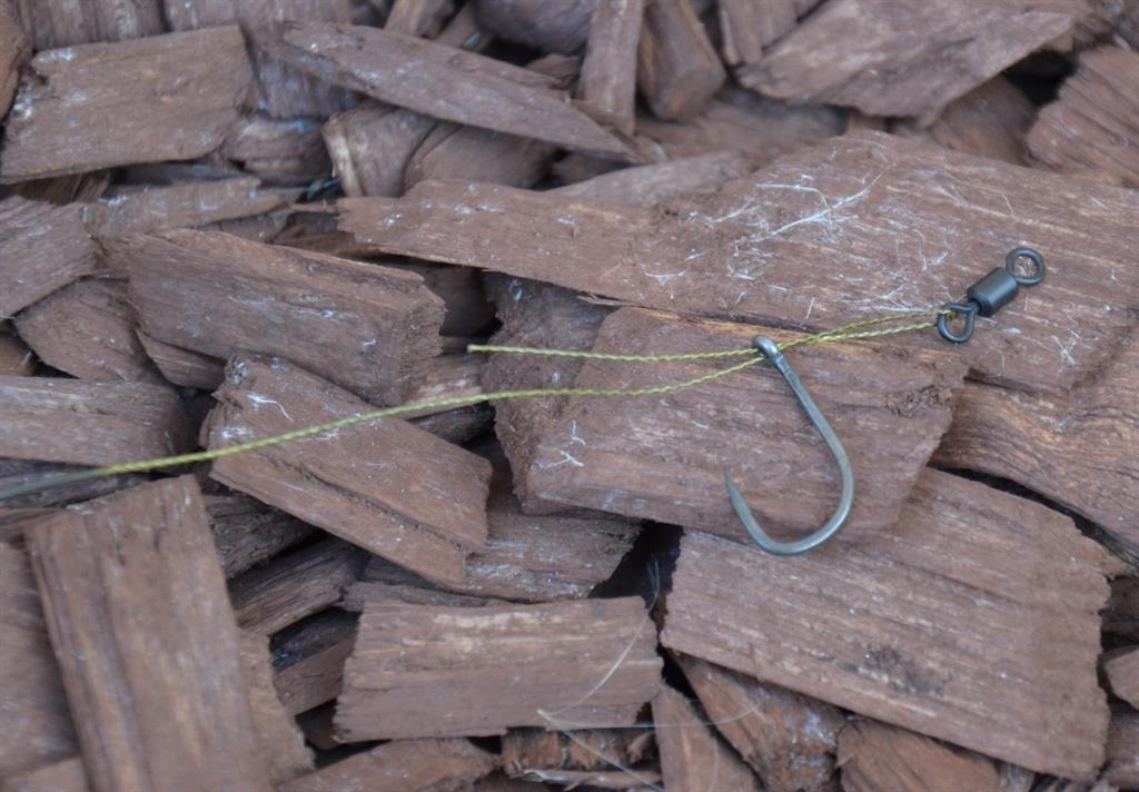 Avem nevoie de carligul preferat, indiferent de producator, numar sau forma acestuia, de un fir camasuit (eu folosesc grosimi de la 25 lbs in sus), un micro-vartej, insa pentru prezentare am folosit unul mai maricel pentru a se putea distinge in fotografii si un line aligner sau chiar shrink tube.