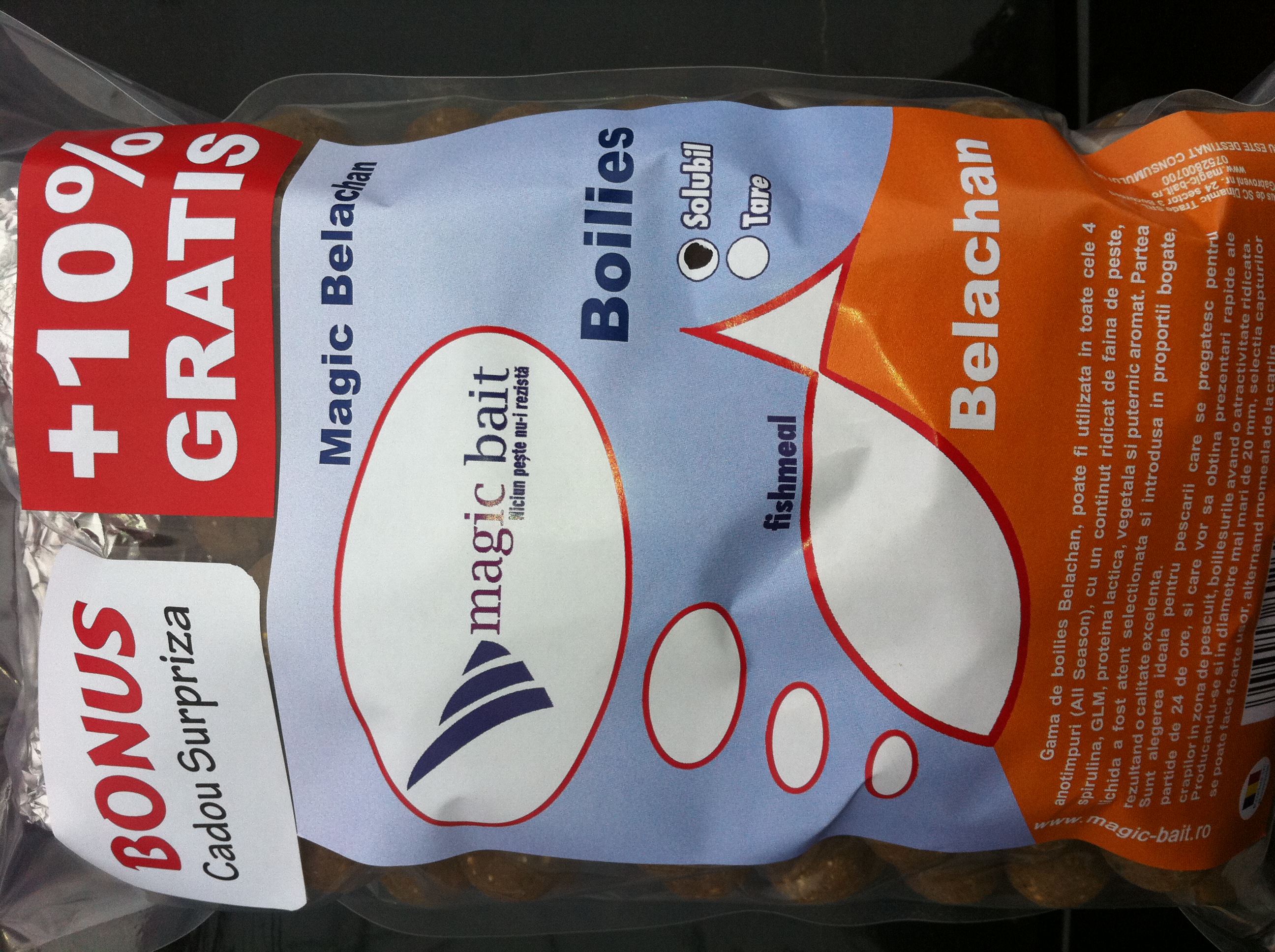 Fiecare gama contine boiliesuri la 1 kg ( 44 lei ) si 3 kg ( 120 lei ) , solubile si tari ( 20, 24 si 30 mm ) , boiliesuri de carlig 14-16-18-20 mm , pasta solubila ( 2 ambalari - 210 gr. si 450 gr. ) , DIP si A.D.N. ( Amestec de Nadire ) . Ambalari diverse la boiliesurile de carlig ( 14-16-18-20 mm ) la 150 gr ( 12 lei ) si 400 gr ( 23 lei ) . Boiliesurile sunt produse pe un fishmeal puternic aromat si bogat proteic .